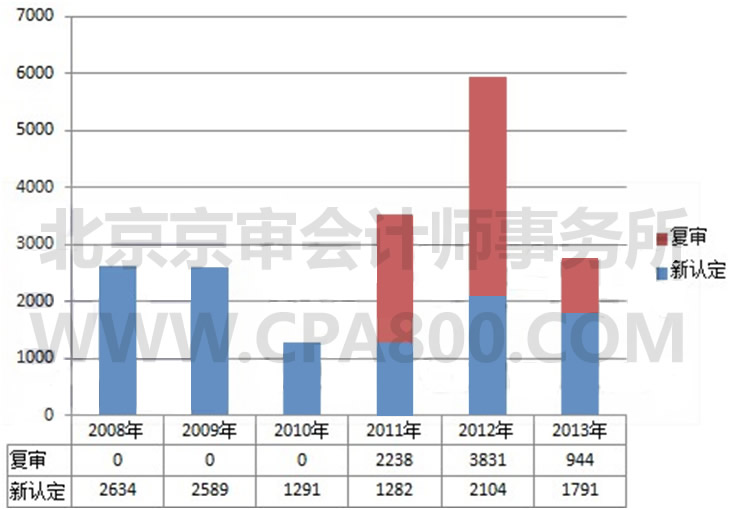 2008年改革后至今高新企業(yè)新認(rèn)定及復(fù)審情況如下圖: