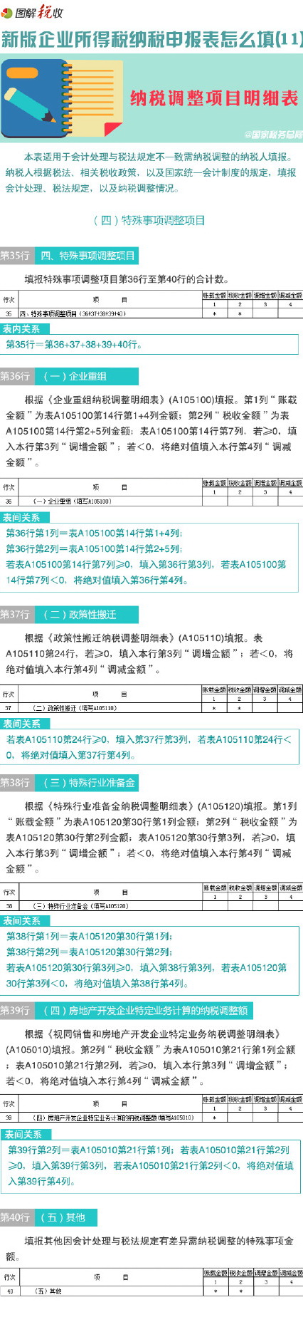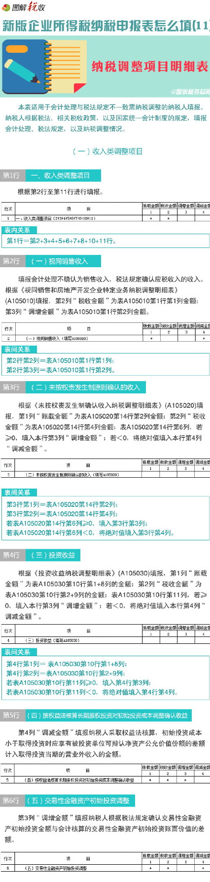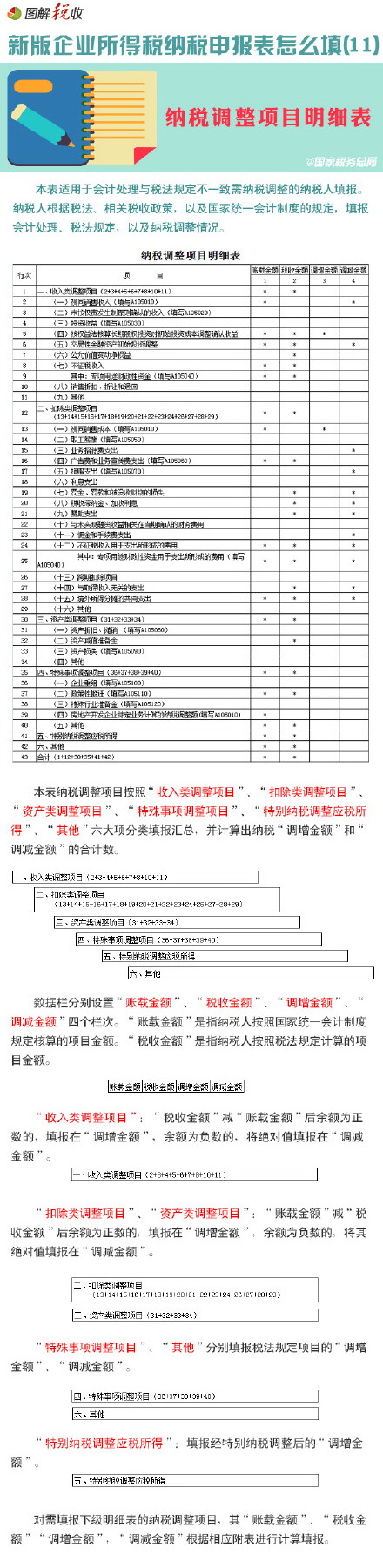 本表適用于會(huì)計(jì)處理與稅法規(guī)定不一致需納稅調(diào)整的納稅人填報(bào)。納稅人根據(jù)稅法、相關(guān)稅收政策,以及國(guó)家統(tǒng)一會(huì)計(jì)制度的規(guī)定,填報(bào)會(huì)計(jì)處理、稅法規(guī)定,以及納稅調(diào)整情況。